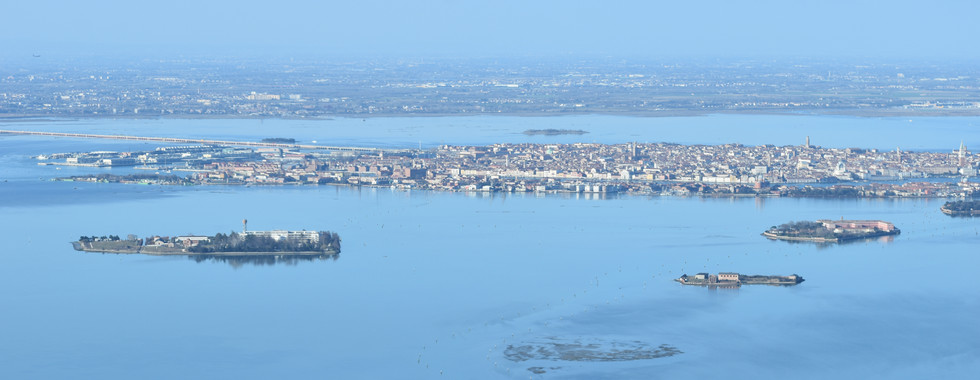 (Left) Flying along the Italian Coast (Centre) EC-NIN lead by our two bosses descending into Venice (Right) Lido-Venice Airport, Italy